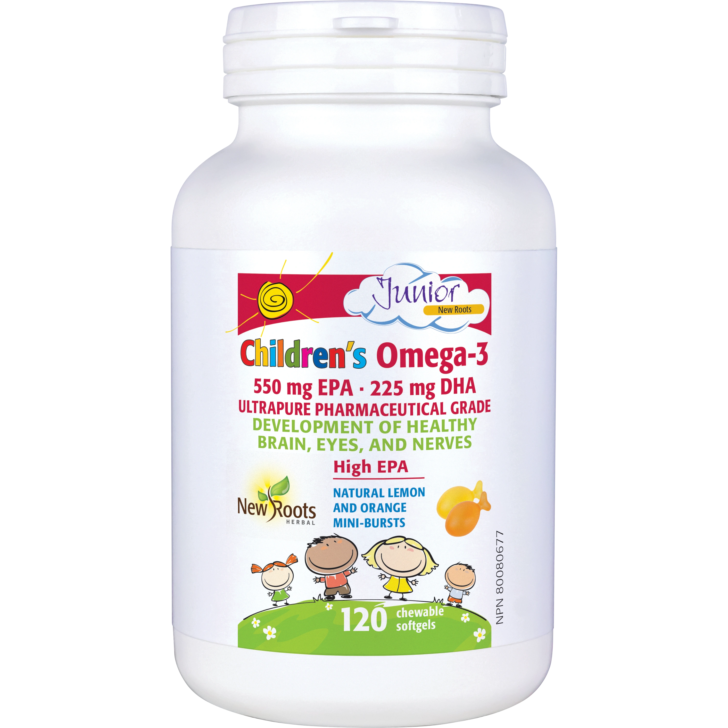 Our sugar-free Childrenās Omega-3, made of premium fish oil, contains the ideal ratio of 550 mg EPA to 225 mg DHA per four softgels, with a subtle burst of natural lemon and orange flavours. Omega-3 fatty acids are crucial for childhood brain development which lays the foundation for learning, behaviour, attention span, mental focus, and mood.