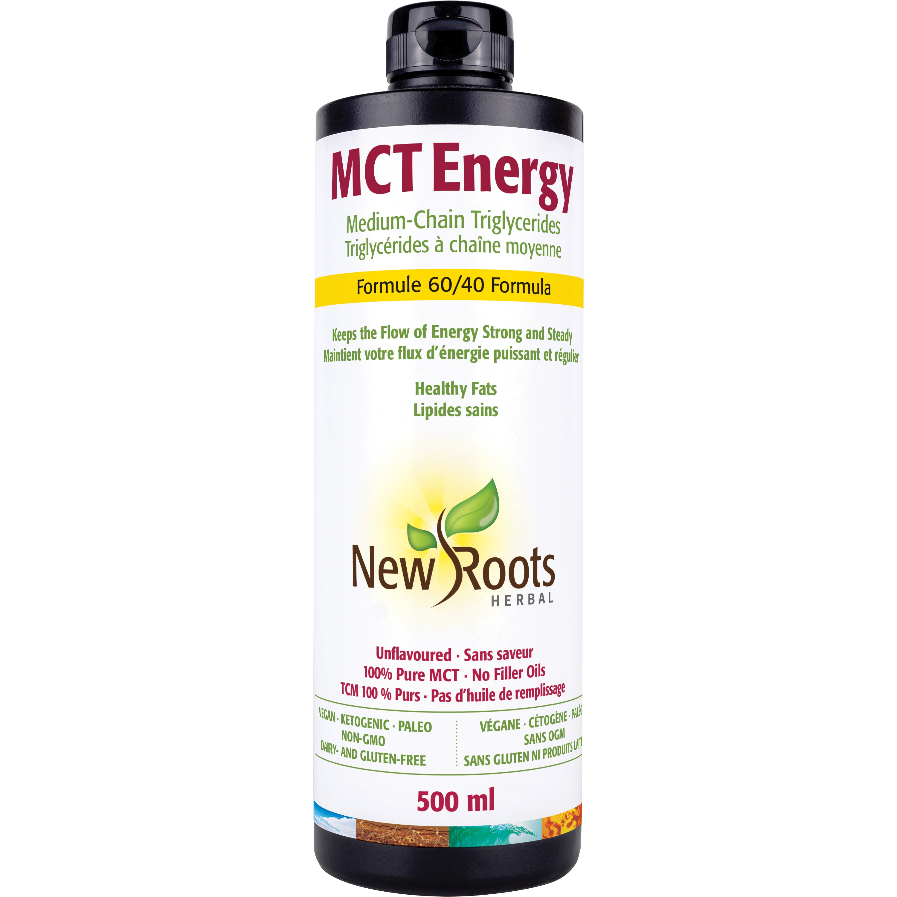 Looking to keep the flow of energy strong and steady? New Roots Herbal’s MCT Energy is made from coconut and palm kernel oils, sources of healthy fats ideal for low-carb, vegan, keto, and paleo diets. With 130 calories per serving as well as 0 g of carbohydrates, MCTs (or medium-chain triglycerides) are a source of healthy fats with minimal fat-storage potential.