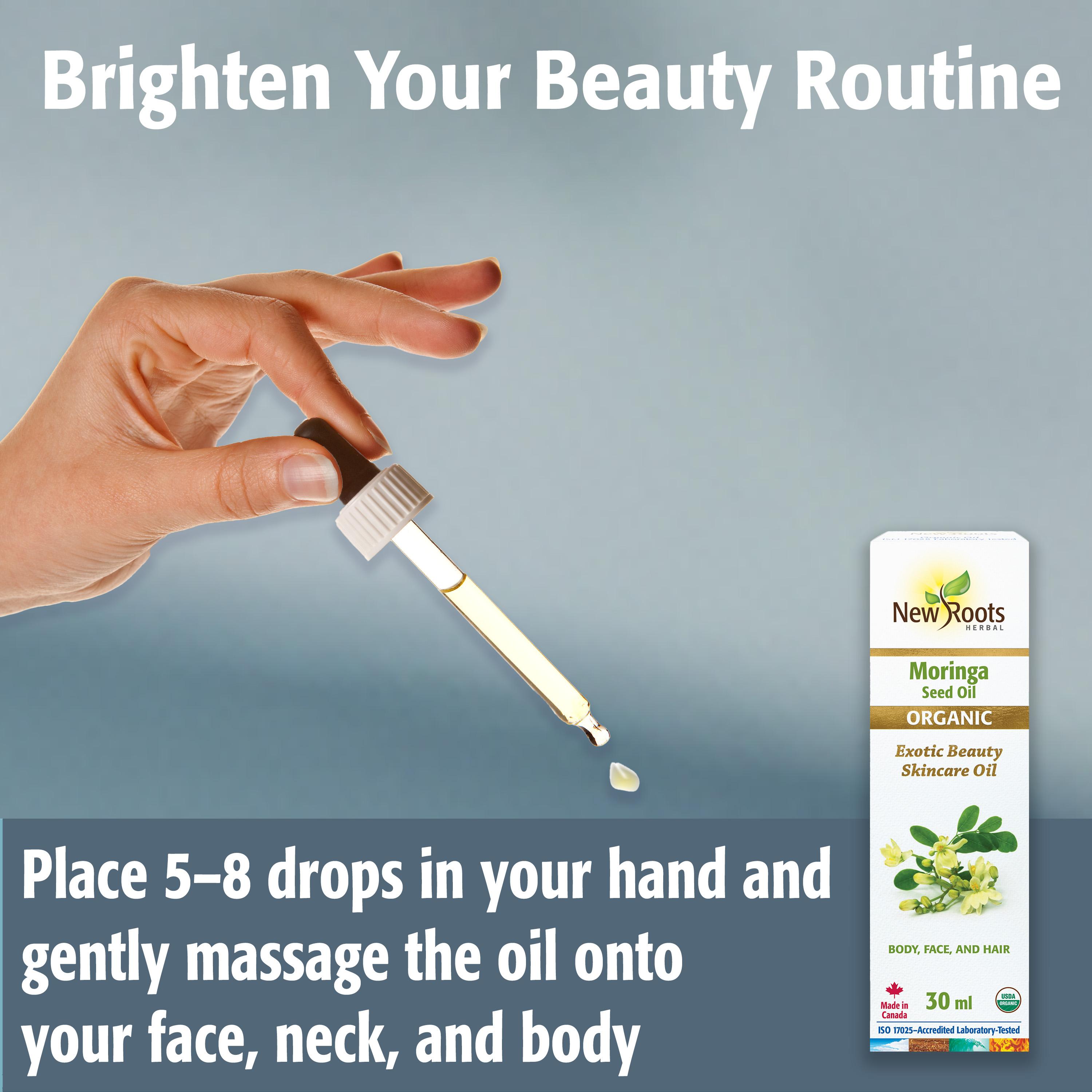 Use moringa oil for gentle facial massage while practicing slow breathing or dry brushing. This helps support microcirculation and relaxation, two underrated pillars of healthy-looking skin.